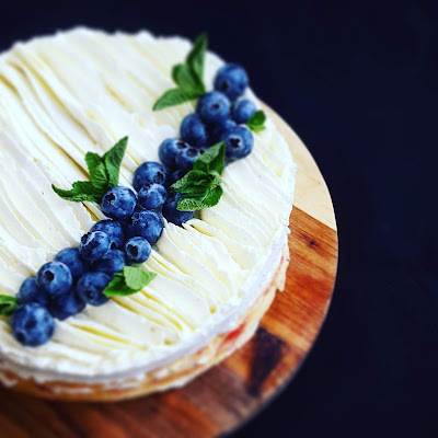 4. Kitą dieną dekoruokite papuošimui skirtu kremu (gaminamas pagal tą patį principą (proporcijos nurodytos recepte!), kaip ir kremas torto surinkimui) bei uogomis.